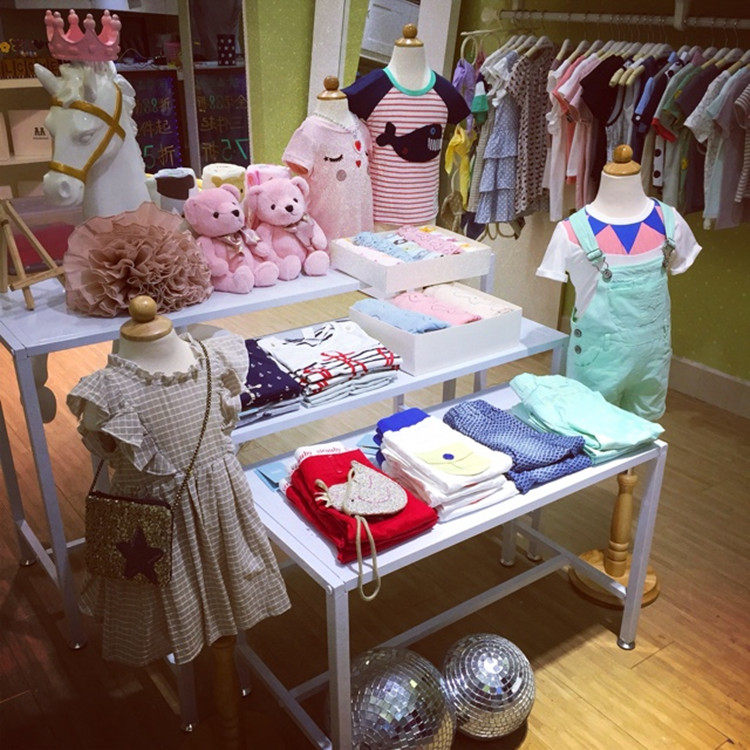 Clothing Shop Running Water Desk High And Low Table Display Table Iron Art Clothing Show Rack Shoes Rack Bag rack in the middle island Show table