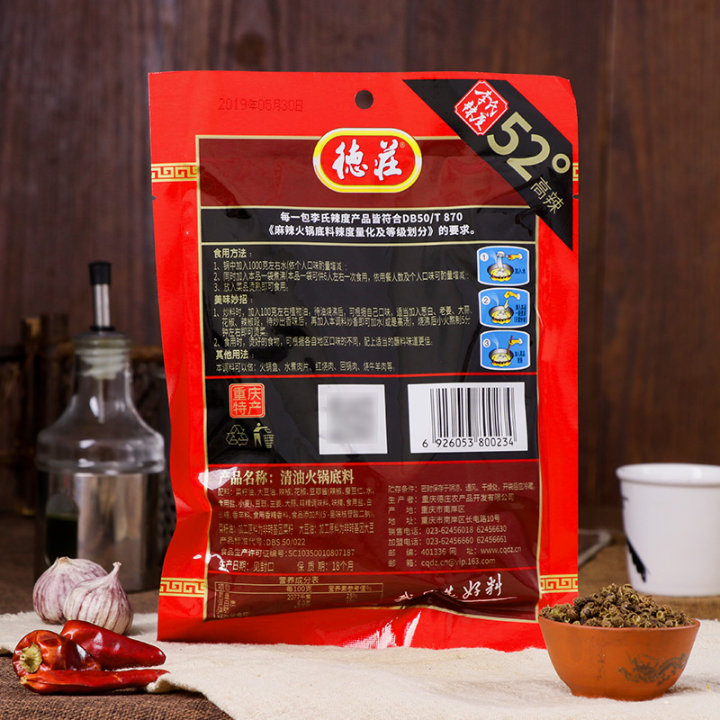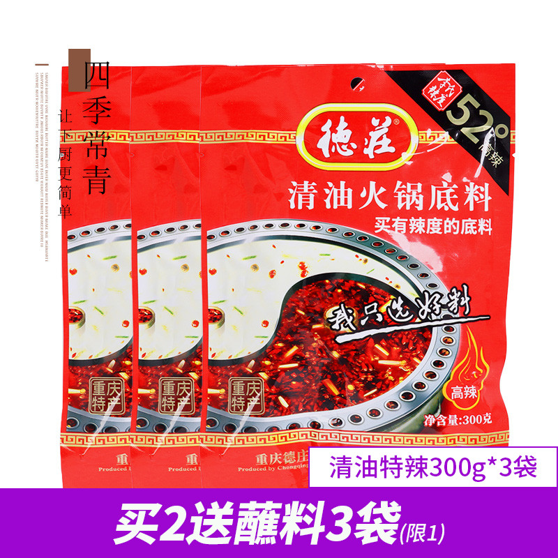 Chongqing Dezhuang clear oil hot pot soup bottom 300g * 3 bags Zhengzong spicy 52 degrees ultra spicy Chongqing speciality seasoning