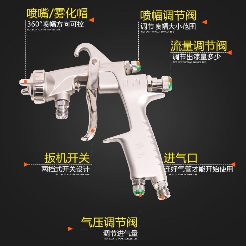 W-71 paint spray gun pneumatic high atomization car paint spray gun 101 furniture spray tool can be connected to diaphragm oil pump