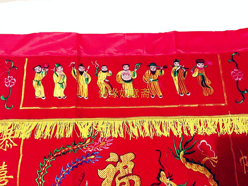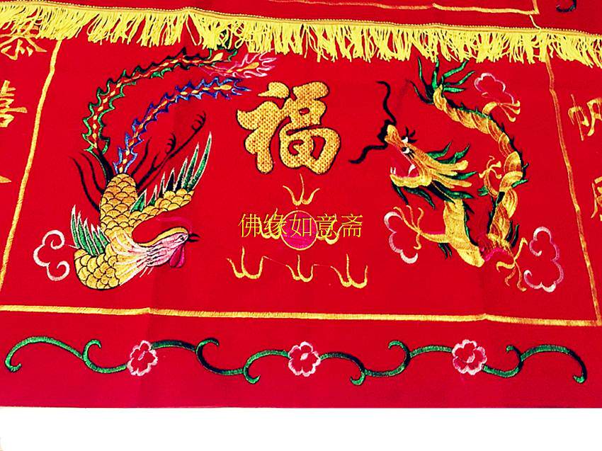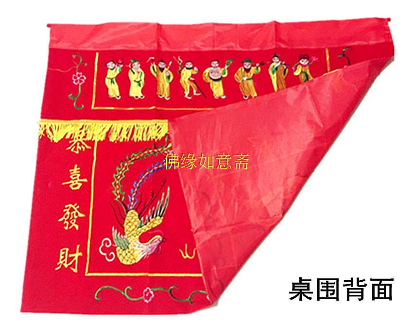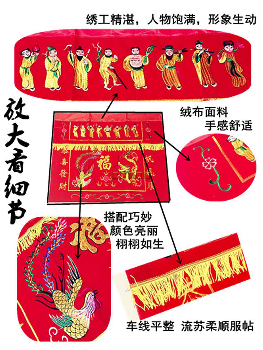 Festive Supplies Buddhist embroidery Table cover Jinyu Mantang Red flocking cloth (Eight Immortals Dragon Phoenix Blessing table skirt)