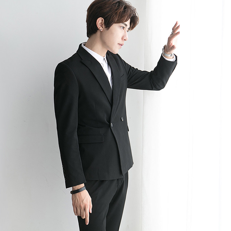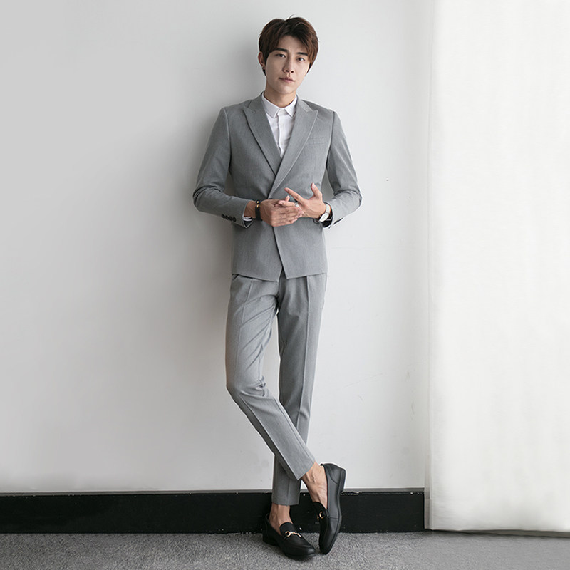 Casual Suit Suit Men's Korean Style Slim Trendy Business Formal Double Breasted Small Suit Groom Wedding Dress