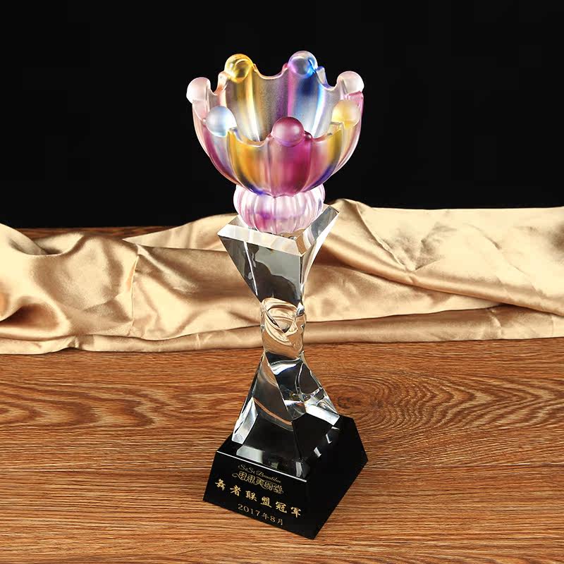Crystal Trophy Customised Competition Champion Trophy Colourful Crown Glazed Trophy Making Lettering