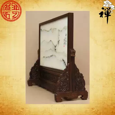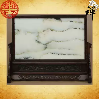 Natural marble painting landscape painting solid wood seat screen plug screen screen back mountain chicken wing wood ornaments gift collection