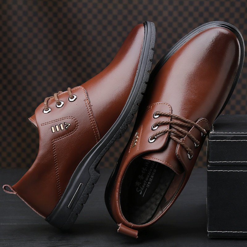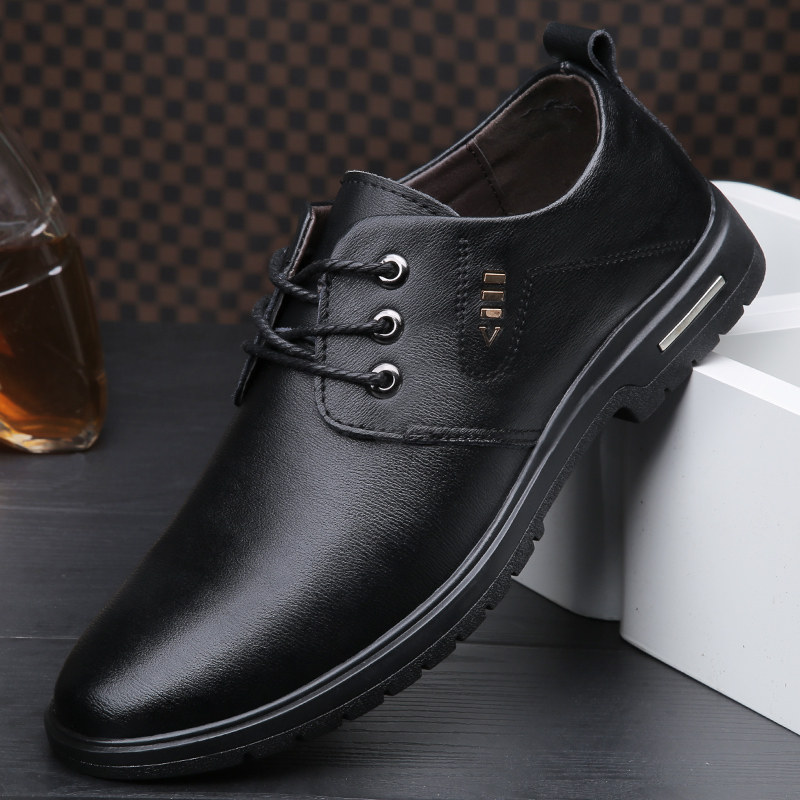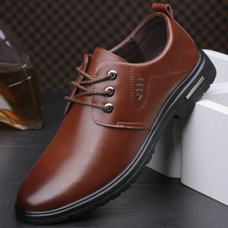 Casual leather shoes men's Korean version leather round toe lace-up business men's shoes new spring and autumn trend British soft leather shoes