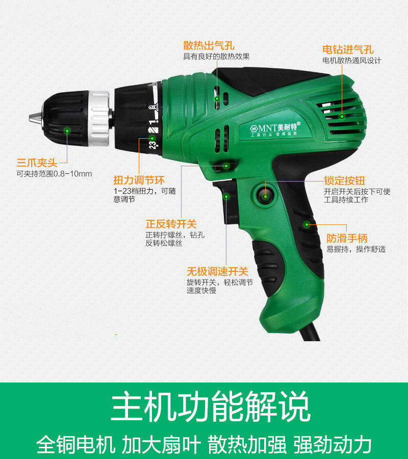 Menet Electric Drill Multifunctional Pistol Drill Home Hand Drill Small Flashlight Turn Drill Batch Tool Driver Electric Screwdriver