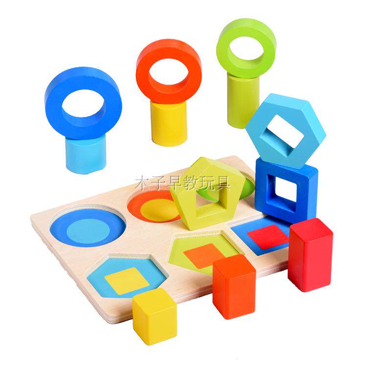 1-3-6 years old children early education Geometric shape cognitive matching building blocks Montessori teaching aids Wooden puzzle toys