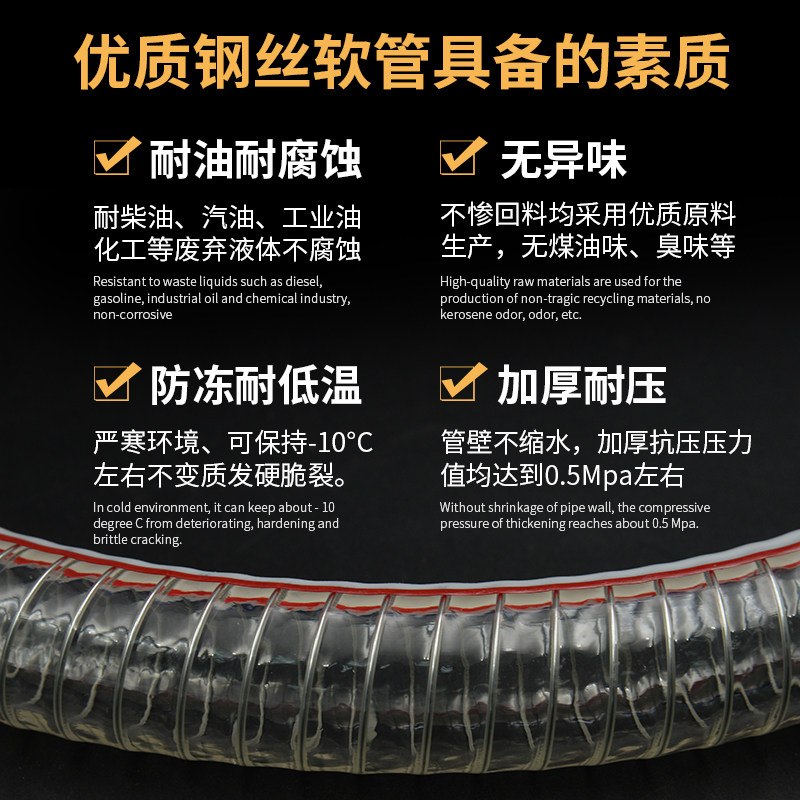 PVC hose Steel wire hose Transparent thickened oil resistant pipe 25mm anti-freezing high temperature plastic soft water pipe Vacuum pipe