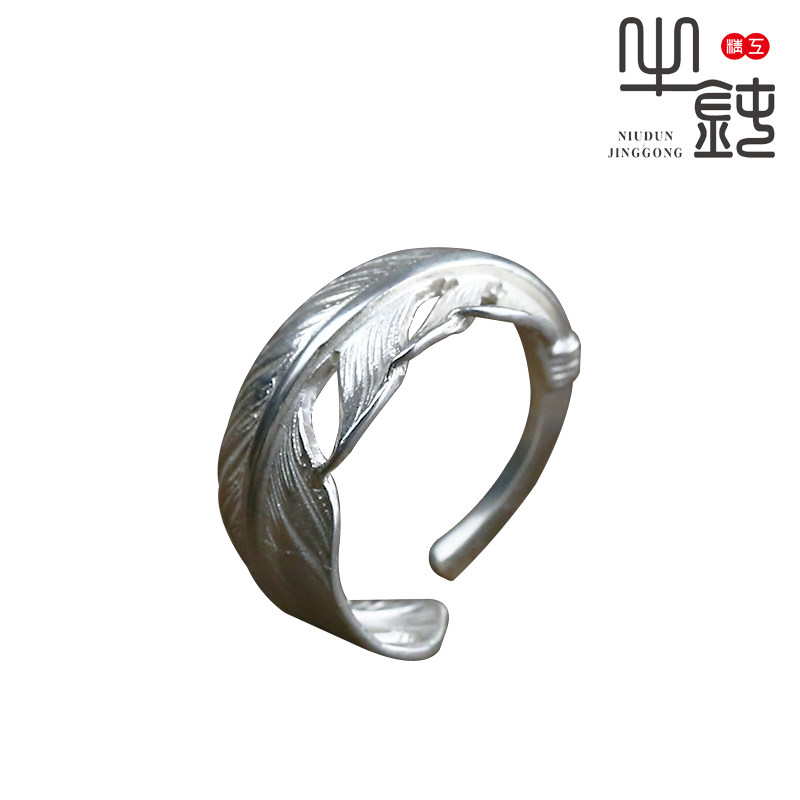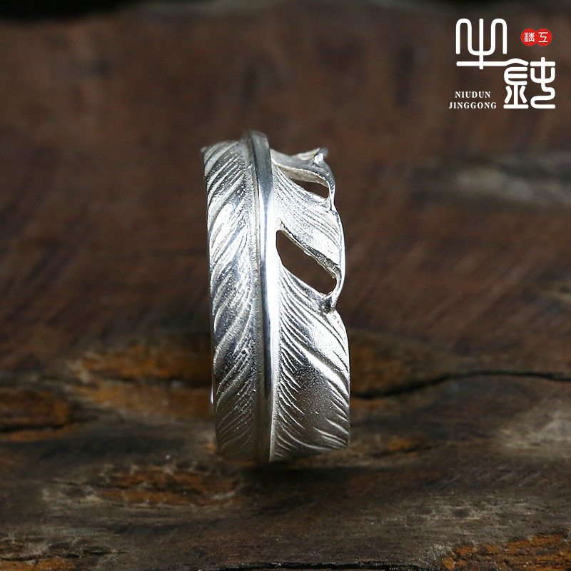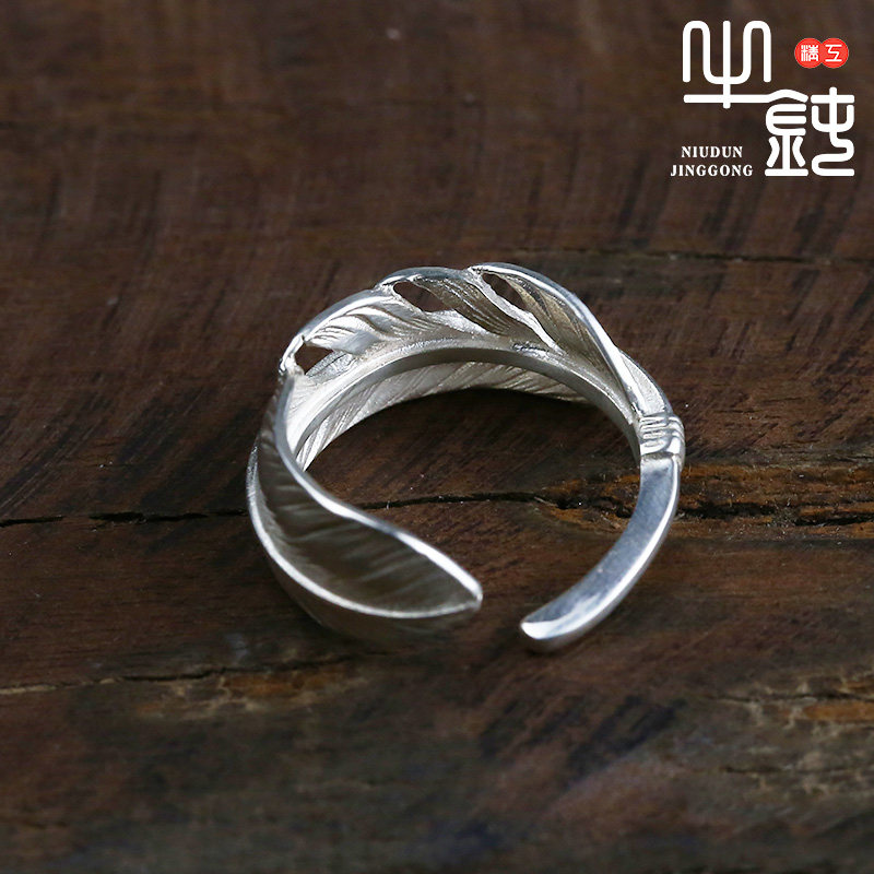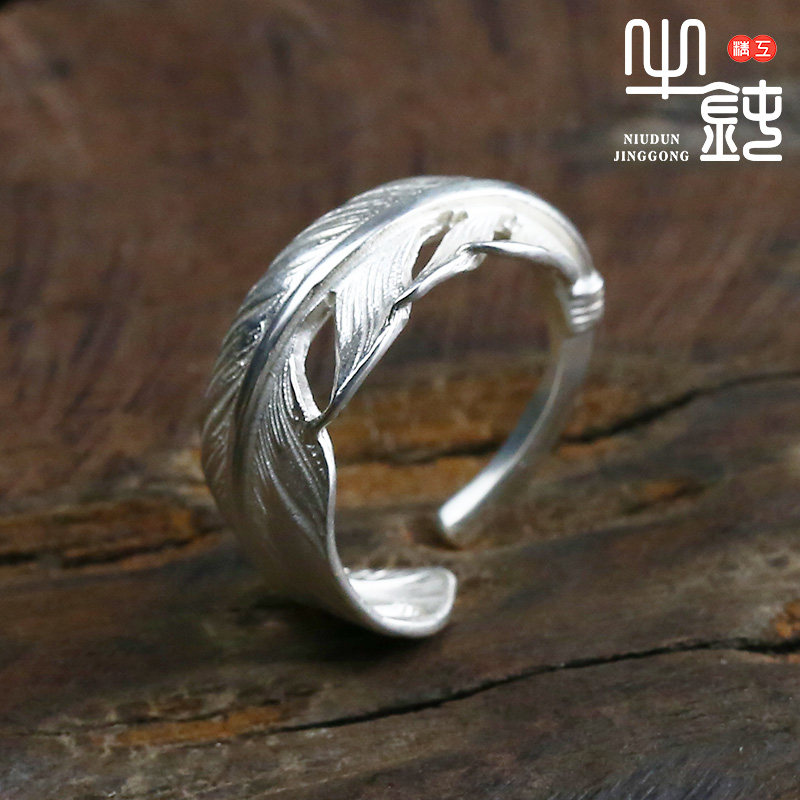 Bull blunt Seiko Takaqiao Feather Ring narrow tail ring 925 pure silver male and female couple hand rings silver ornaments