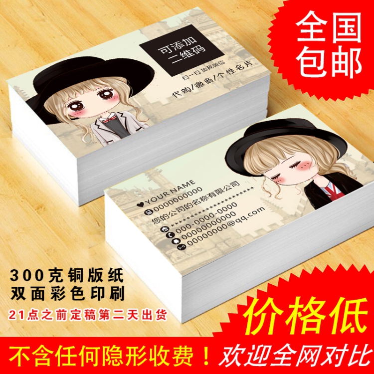 Creative personality Micro-commercial two-dimensional paper Paper Business Card Making Free Design Bifacial Print Custom Made