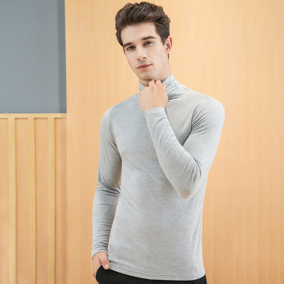 High collar T-shirt male long sleeve turtleneck with large size wood Deir autumn clothes underwear blouse for autumn and winter Modale thin undershirt