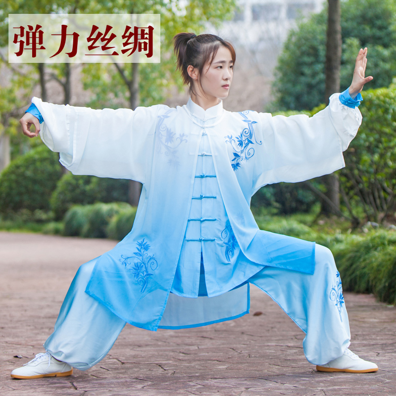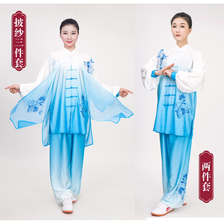 Xiaohe Mountain Tai Chi suit women's new elegant veil gradient color embroidery performance competition practice Tai Chi Chuan clothing men