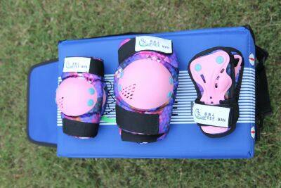 Colorful blue dazzling pink dazzling blue handguards68 a pair of dazzling blue knee pads68 a pair of dazzling blue elbow pads68 a pair of dazzling pink handguards68 a pair of dazzling pink knee pads68 a pair of dazzling pink