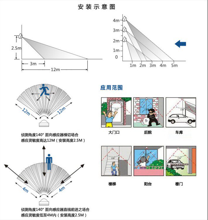 Infrared human body induction flood light led outdoor waterproof projection light balcony garage corridor adjustment sensor light