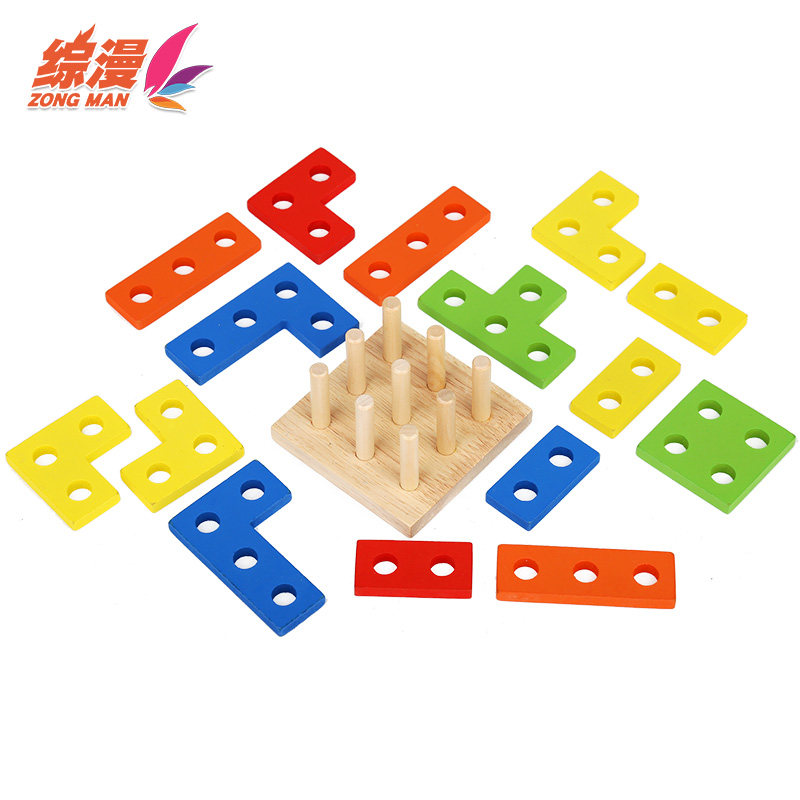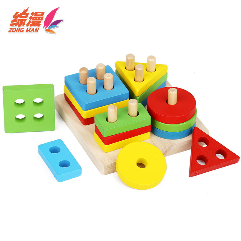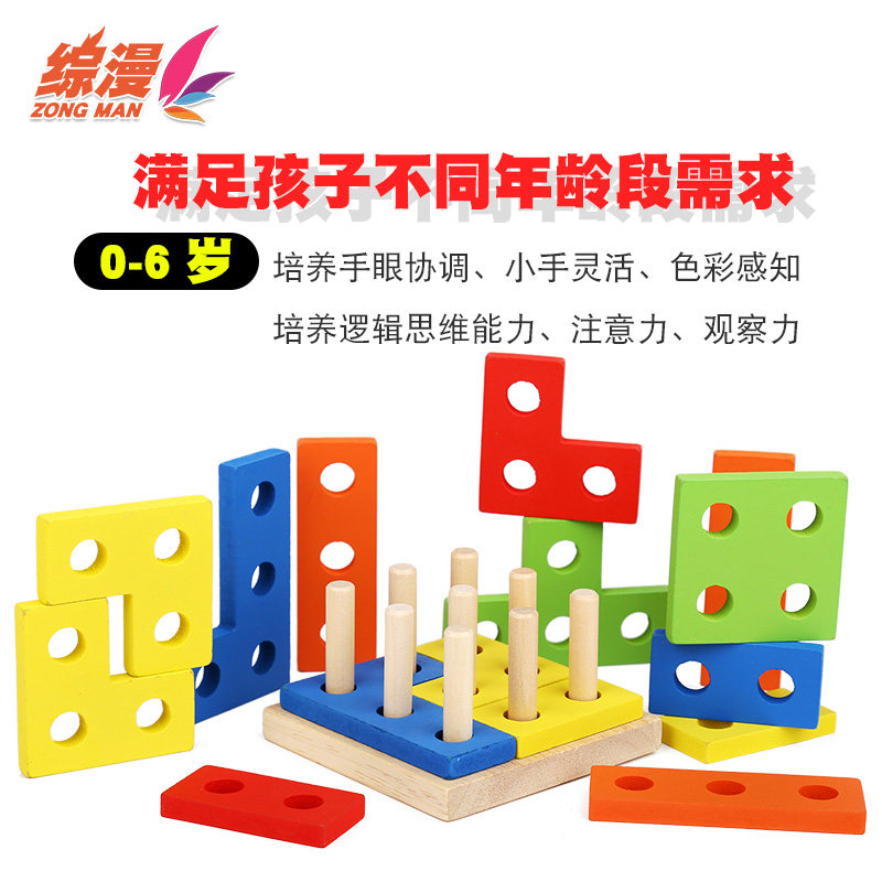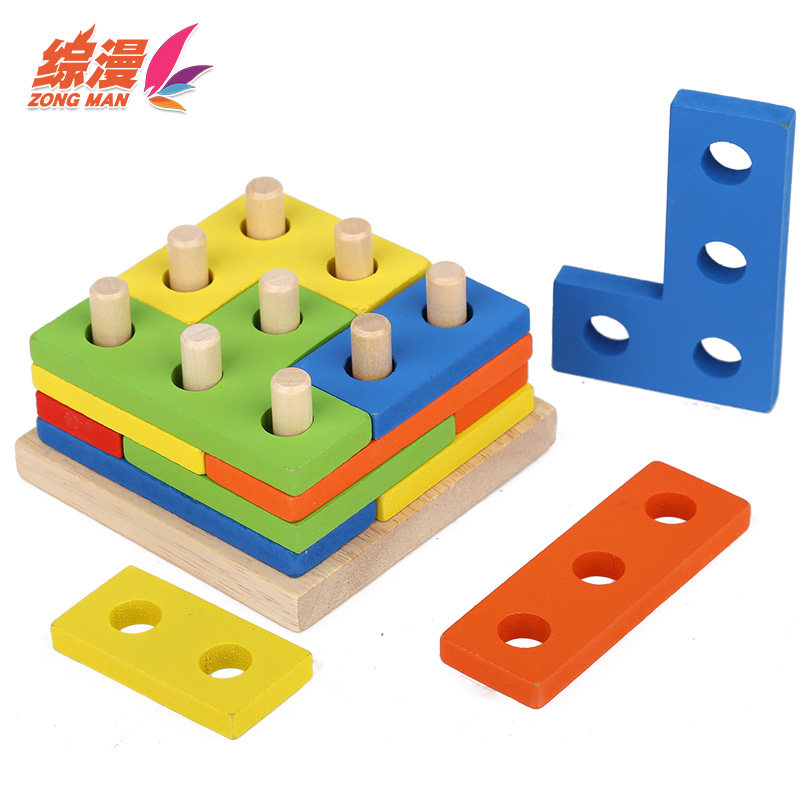The Ensemble of Comic Wooden Geometric Shapes Paired Columns Infant Child 3-6-year-old Puzzle 2 Early Teach Baby Intellect Toy