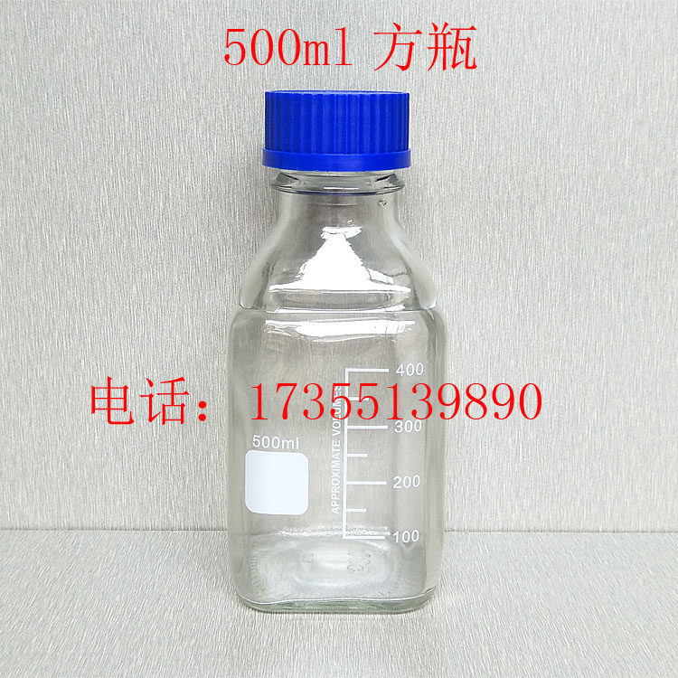 500ml transparent blue cap reagent bottle, square bottle, square bottle, square bottle, screw mouth bottle, silk mouth bottle with scale
