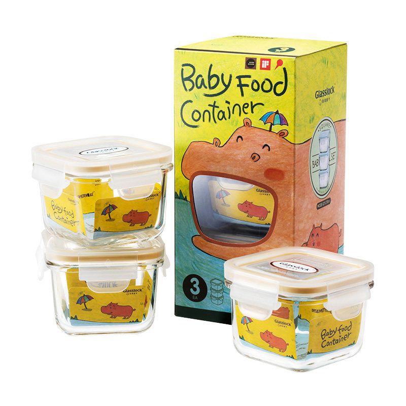 Glasslock toddler baby glass fresh-keeping box supplementary food box mini trumpet baby lunch box bowl storage frozen