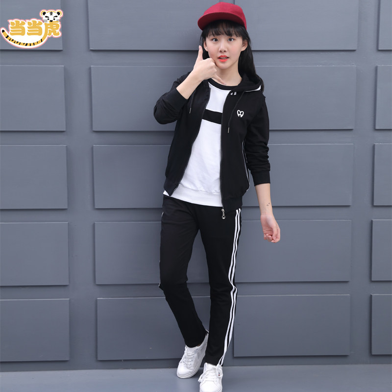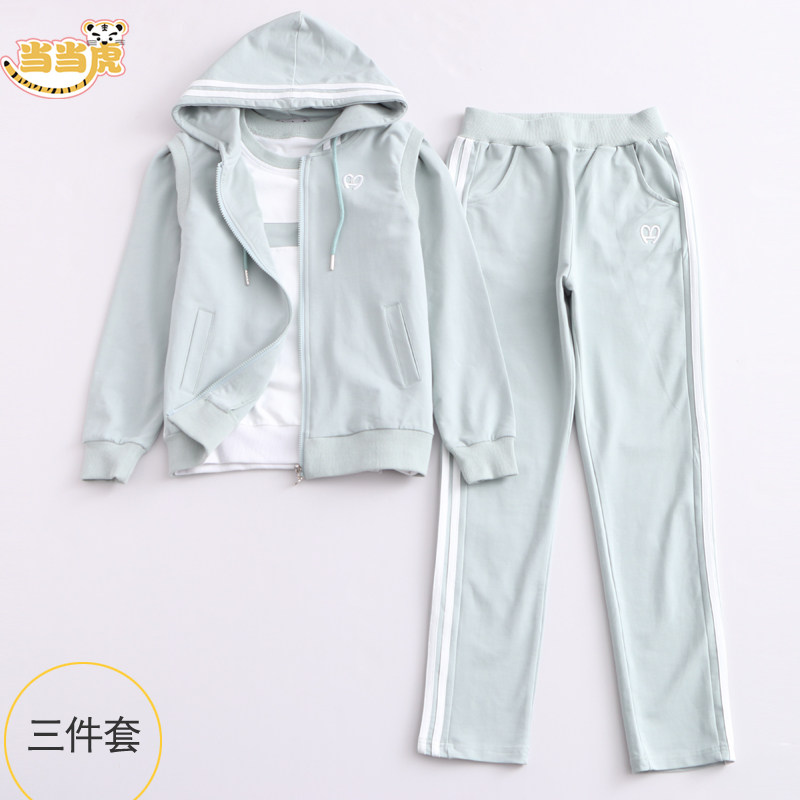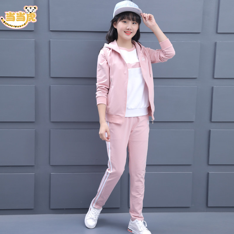 Medium and big children spring and autumn set 2021 new 12 autumn clothes children girls 15-year-old girls sportswear three-piece set of foreign