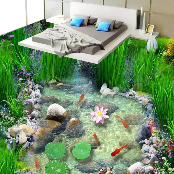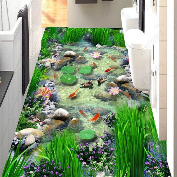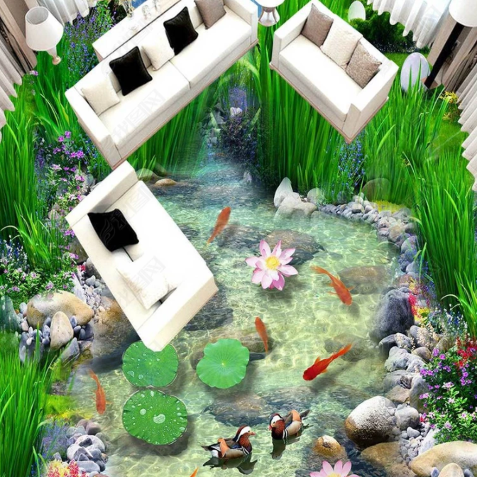 Custom-made 3D three-dimensional self-adhesive floor stickers floor leather floor decoration living room bedroom floor stickers stickers koi