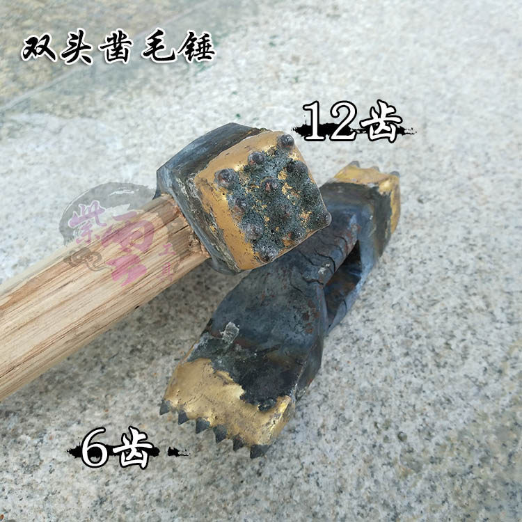 Handmade alloy stone hammer wooden handle hammer chisel hair hammer lychee surface flower hammer smashing cement concrete bridge chisel rough surface
