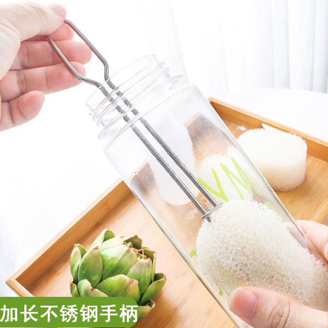 Sponge bottle brush stainless steel cup brush long handle glass cup cleaning cleaning brush 360 degree rotation