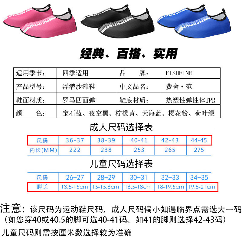 FISHFINE male and female adult beach traceability dive watering soft sole dried shoes swimming snorkeling shoes for children