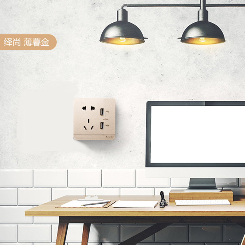 Schneider dual USB five-hole socket with five-hole charging household Yishang socket