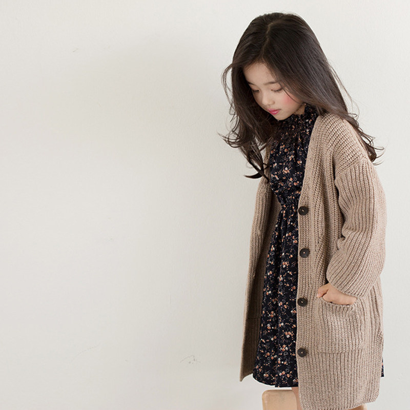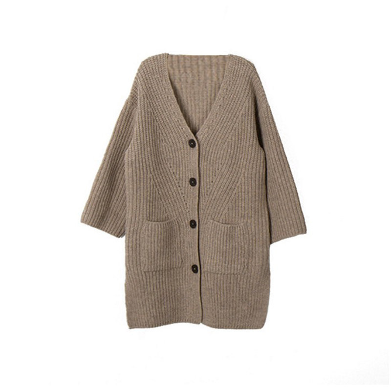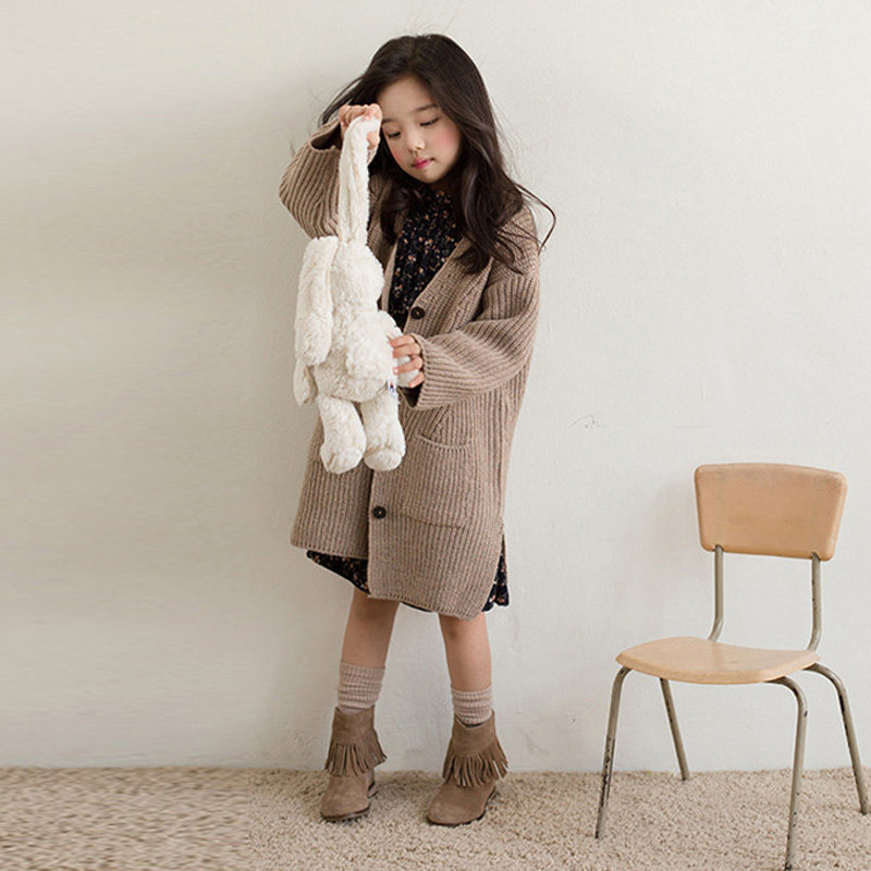 Girls long knit sweater 2022 Fall and Winter Oak Han Gas V - collar coat coat coat coat coat coat