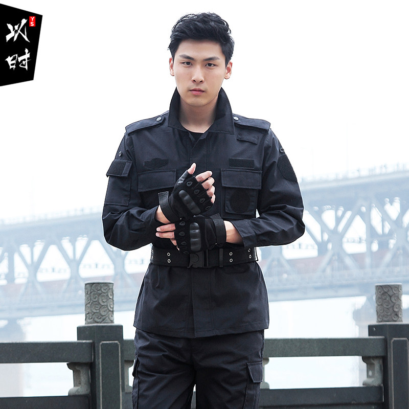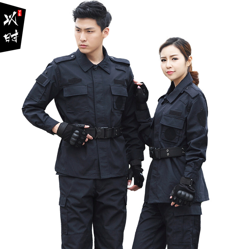 Security long sleeve training uniforms spring and autumn suits wear-resistant grid men and women Black autumn and winter thick Special Forces combat uniforms