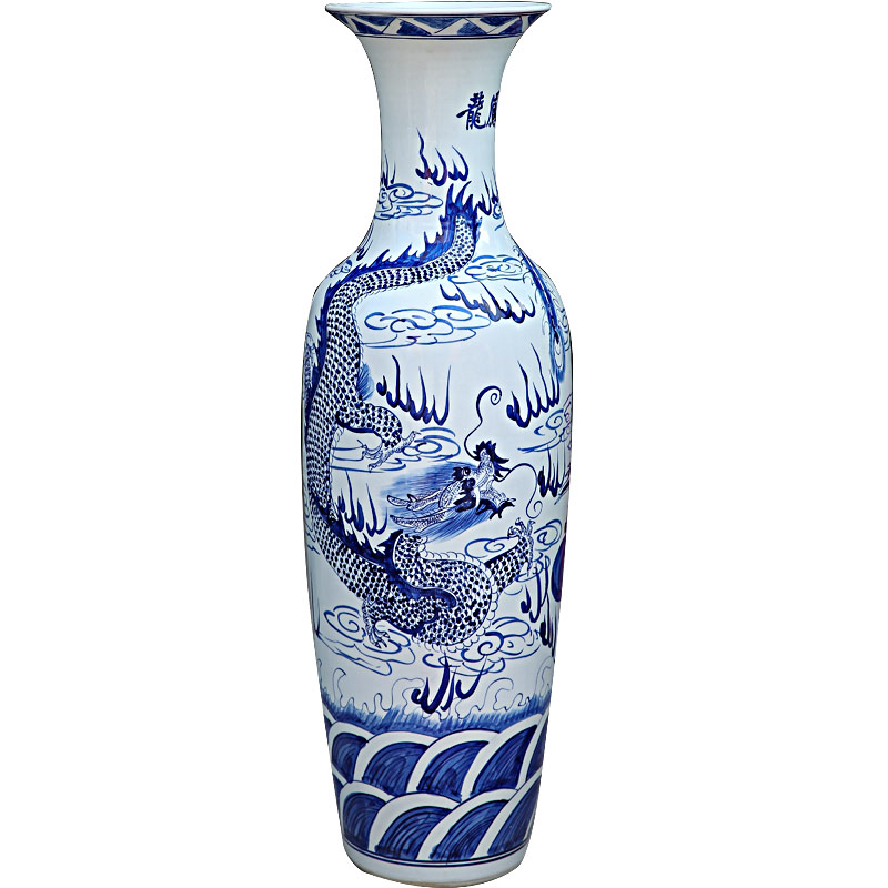 Jingdezhen Ceramic Ware Ground Large Vase Hand Painted Green Flower Porcelain Dragon Pineapple's Xiang Living Room Home Hotel Business Opening Ceremony