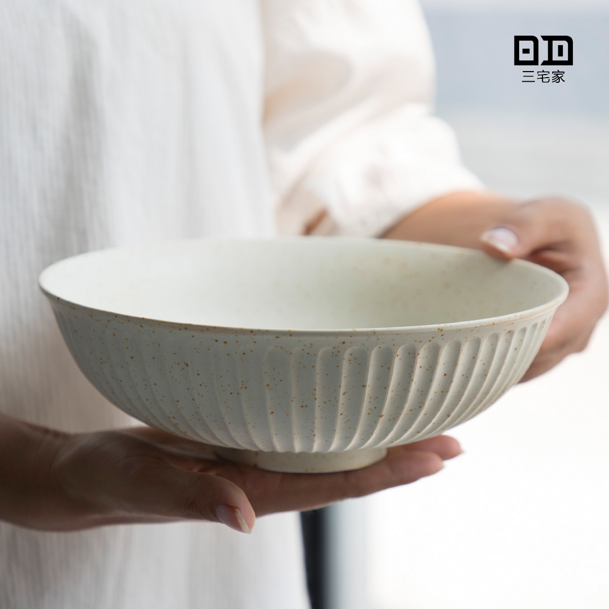 Chinese Zen scrub handmade coarse pottery salad bowl Large noodle bowl Jingdezhen coarse pottery bowl handmade coarse pottery tableware