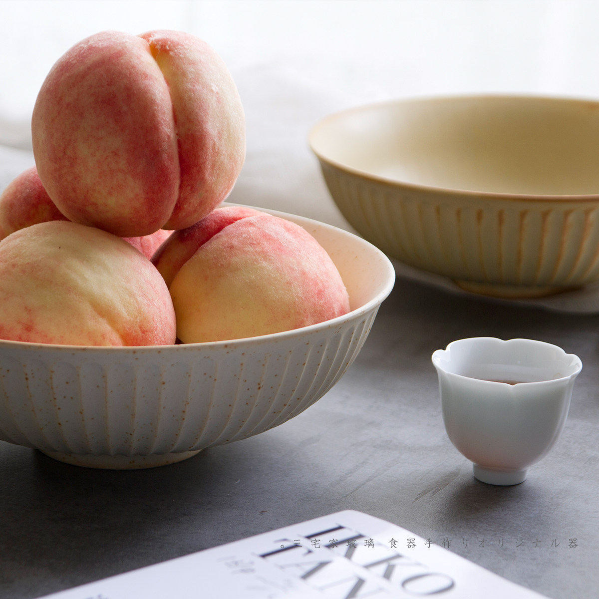 Pu hand-scraped large soup bowl white