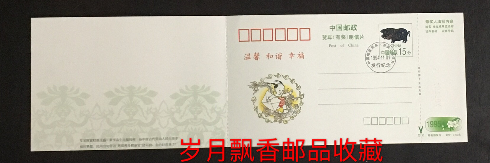 1995 Year of the Pig Lunar New Year with Award greeting card-type postage envelope (full set of 5 cards 5 5 cards) Total spot