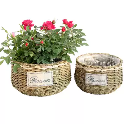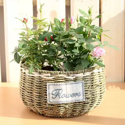 Pastoral rattan straw weaving bamboo weaving green planting large flowerpot gold Gedo meat small flower arrangement flower basket pure hand woven basket creative