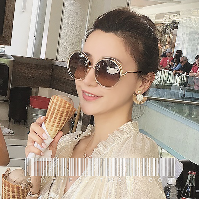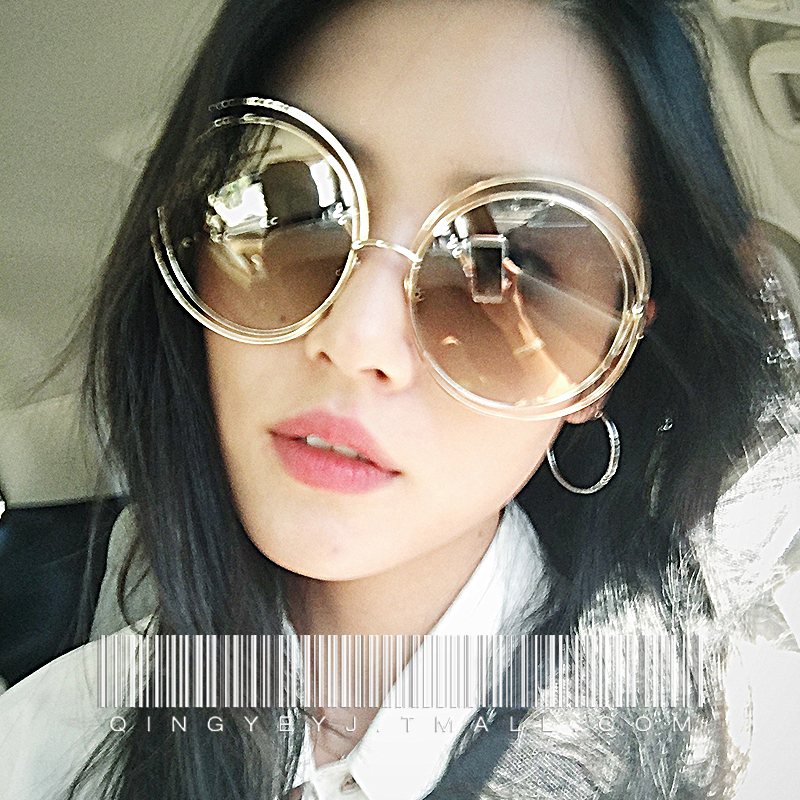 Round oversized frame sunglasses female tennis red stars with large face slim large round frame glasses retro tea colour sunglasses