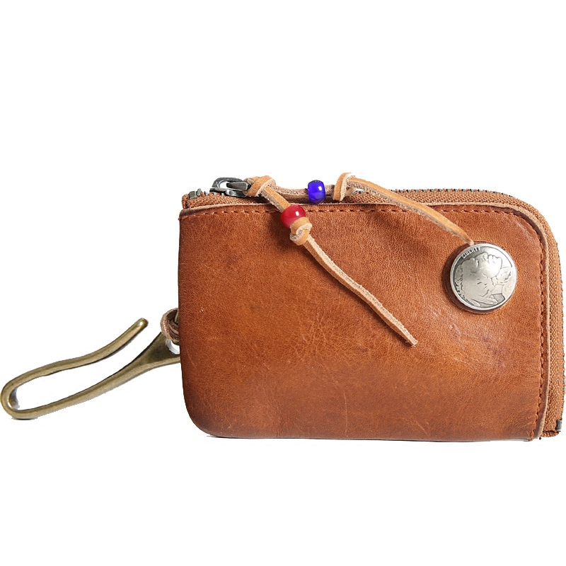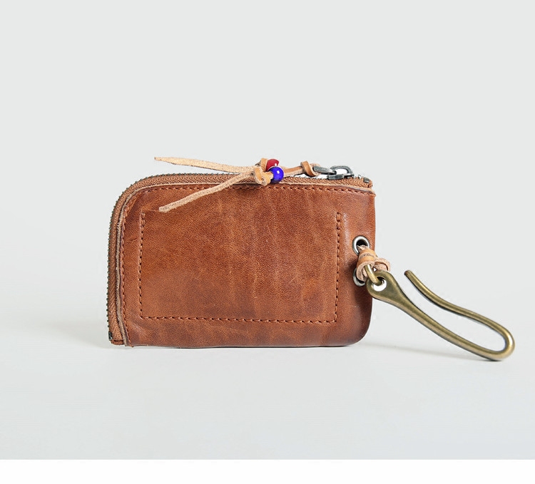 High - end men retro - leather leather keys to vegetable tanning head skin short - zip keyboard change wallet 1