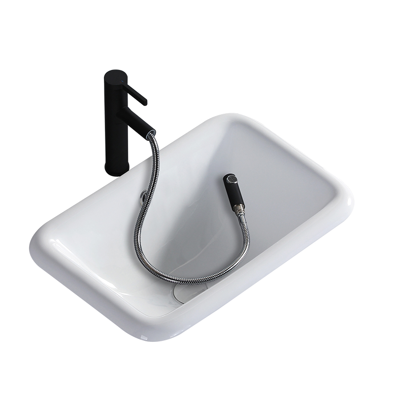 HTZ560 single sink to send white ceramic water HTZ560 with black waterfall faucet package HTZ560 with black square faucet package HTZ560 with black train faucet package H