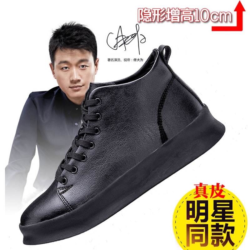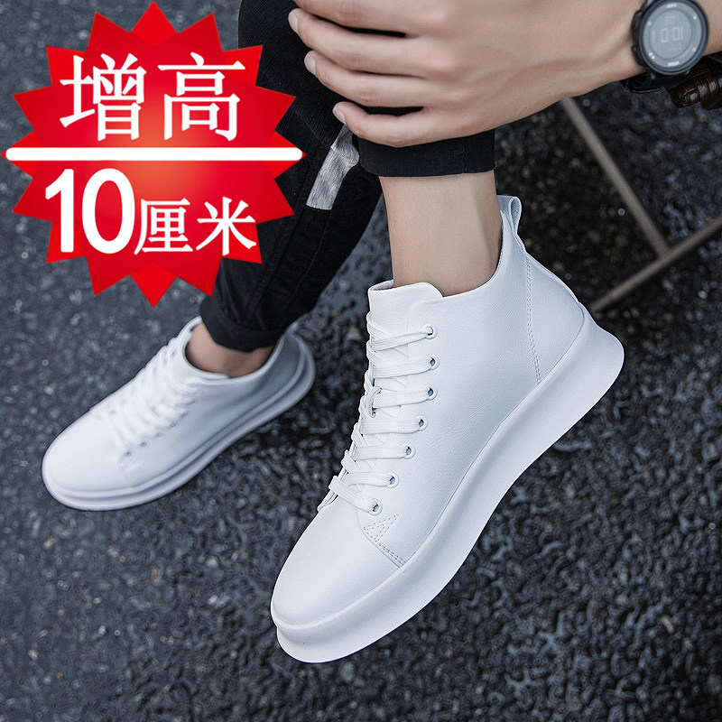 Leather face heightening shoes men 10cm 100 hitch youthful trendy genuine leather men's shoes Invisible inner heightening 6cm8cm white casual