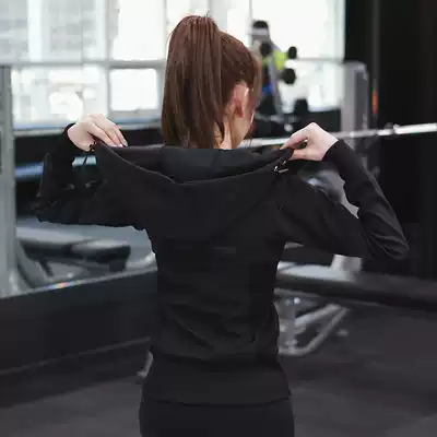 New handsome elastic sports jacket slim sweatshirt female BF style Korean fitness long sleeve running yoga jacket
