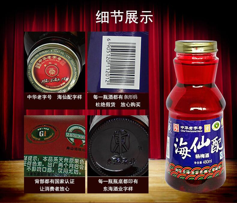 Haixian with bayberry wine 480ml x 6 bottles gift box Zhoushan seafood with self-brewed plum wine original juice refreshing fruit wine