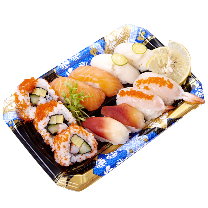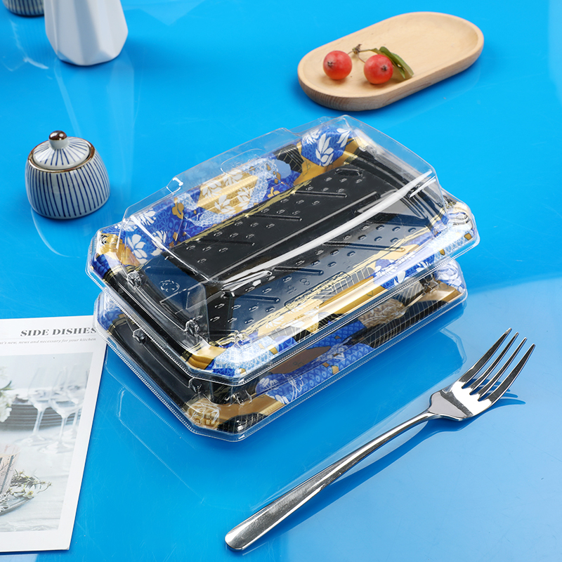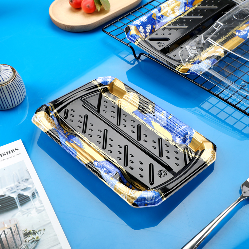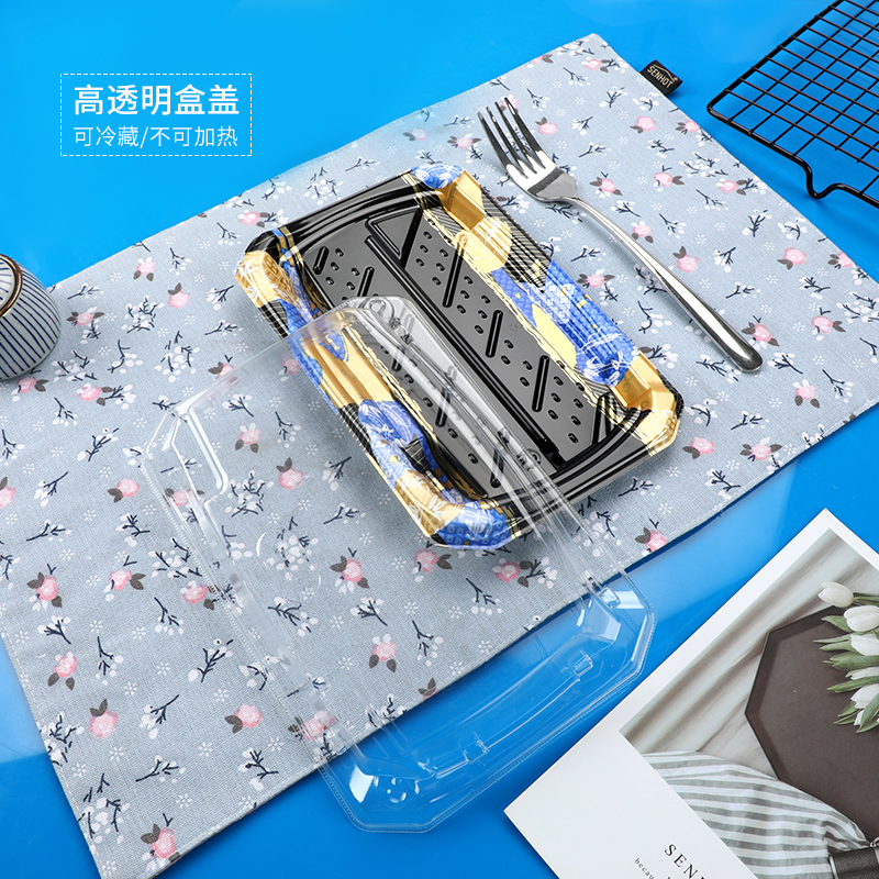 New Tricolor Gold Blue Sushi Box Hanging Takeaway Plate Box Color High - end Sushi Plate 400 sets