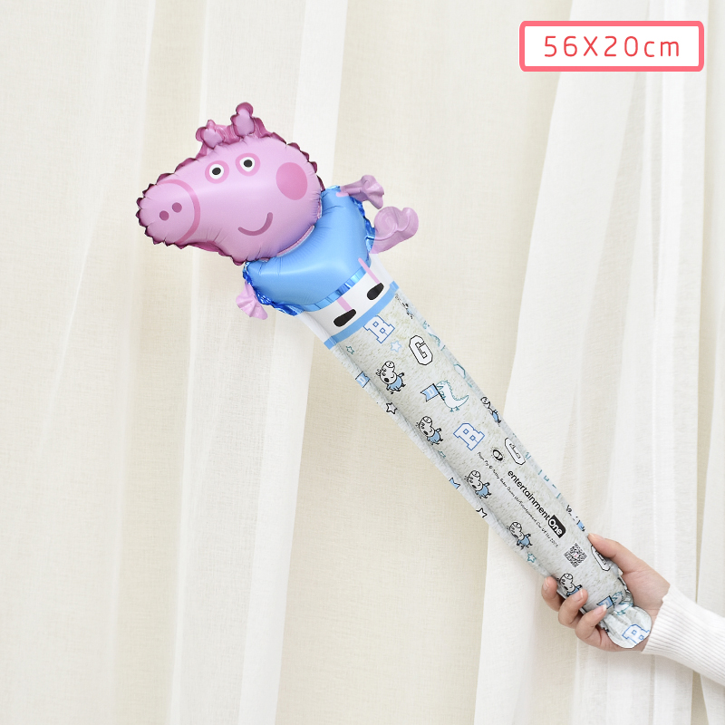 Long version of Sally chicken holding balloon Long version of pink hairy holding balloon Long version of Peppa pig holding balloon Long version of Peppa pig blue holding balloon Long version of Peppa holding balloon Long version of George holding
