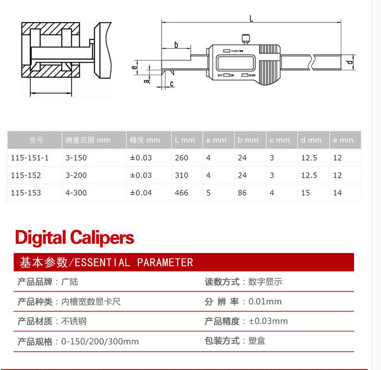 Wide-land inner groove width digital caliper 0-150 0-200 0-300 electronic groove width vernier caliper inner groove caliper