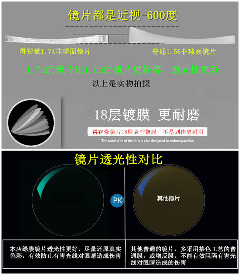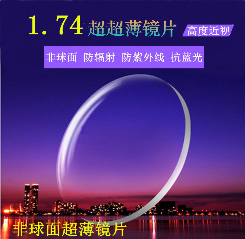 Anti-blue light 1.74 ultra-thin aspherical lens myopia spectacles high myopia astigmatism thin matching plate processing