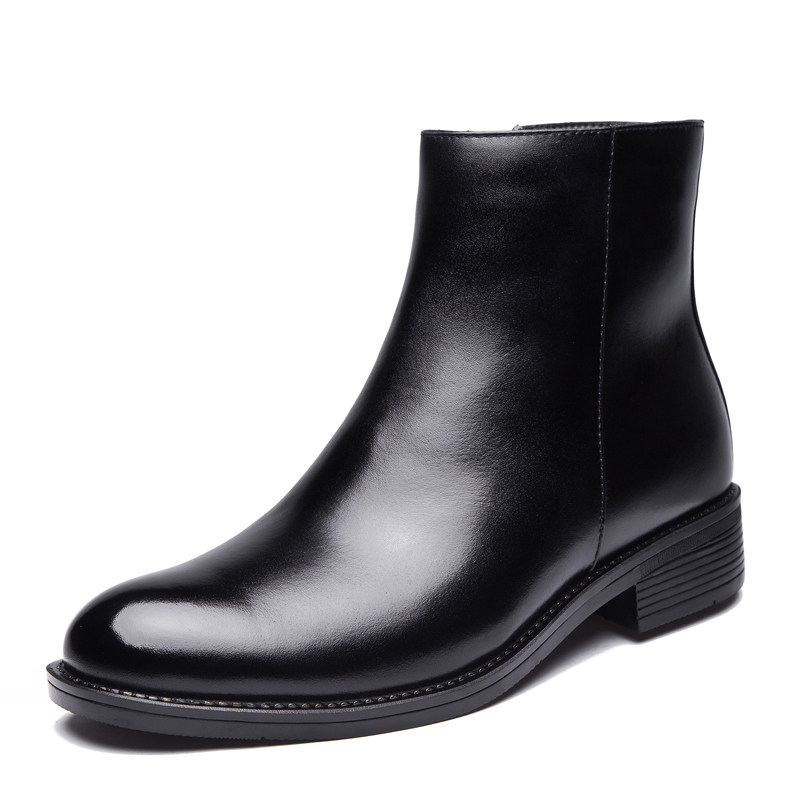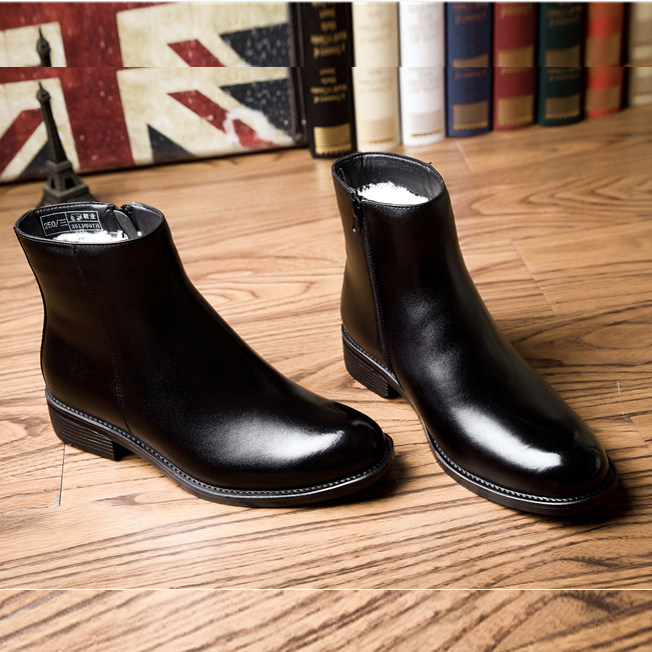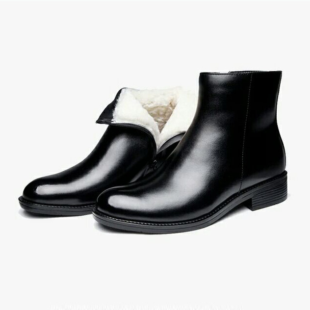 Inglén Winter Gush Leather High Cylinder Side Pull Chain Positive Dress Fashion Martin Boots Wool Male Cotton Leather Leather Boots Leather Boots