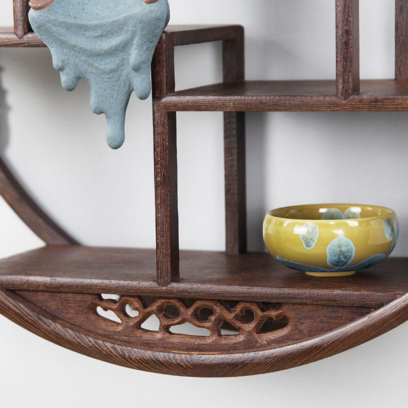 Chicken Winged Wood Small Antique Solid Wood Chinese Style Wall Hanging Wall Tea Pot Tea Rack Shelf Antique Shelves