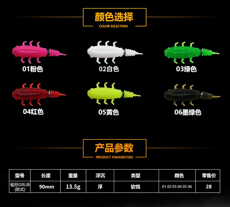 Xia Yu floating water soft worm odd pupa soft bait slippery mouth black fish specially kills long-range cast high specific gravity thunder strong silkworm pupa to hit black road sub bait