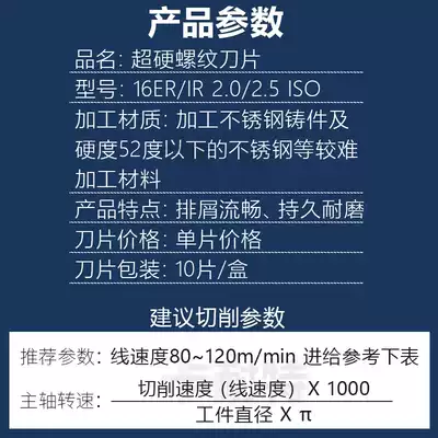 Superhard threaded blade 16ER IR 2 0 2 5 ISO processing stainless steel and castings below 52 degrees