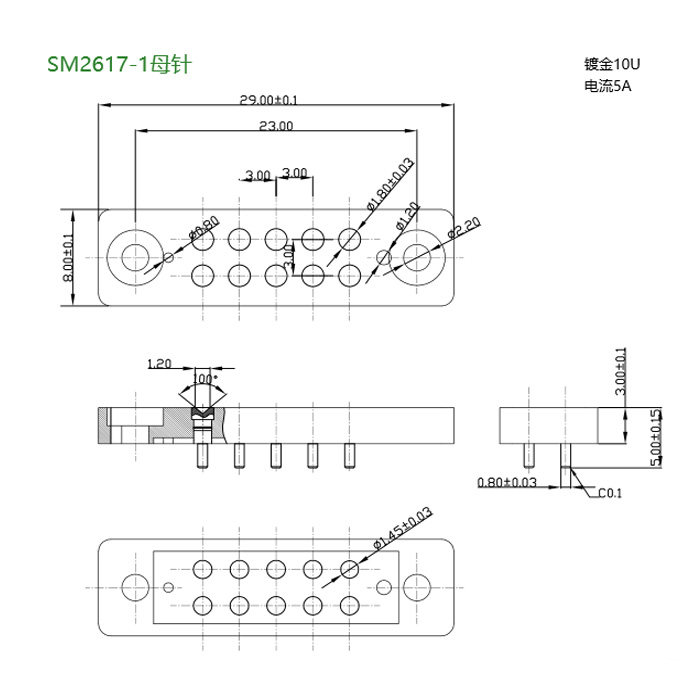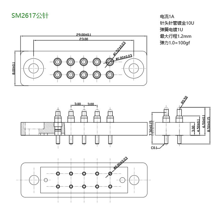 10P probe connector Spring thimble Charging spring pin Conductive connector Electronic shock M2617 10P