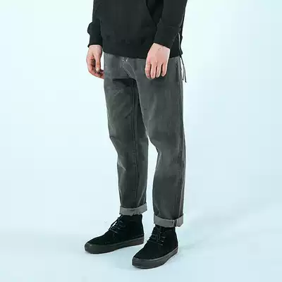 RETROMIND original design gray simple Cat must wash old red ear jeans straight tube ankle-length pants