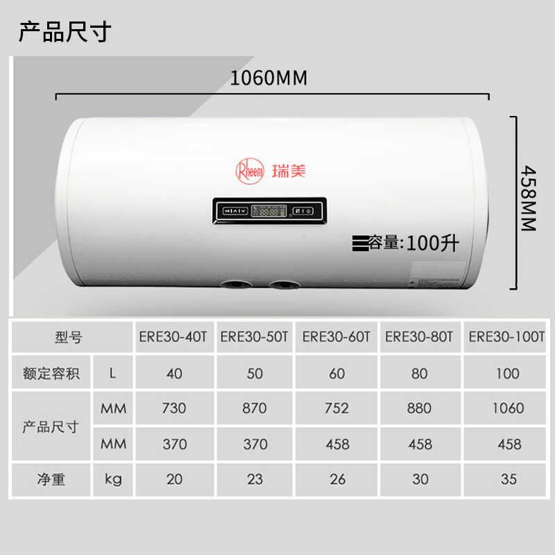 Rymi Water Heater Electric Home 40 Litres Water Storage Type 50L60L Small Bath 80L100 Liter Constant Thermal Intelligence
